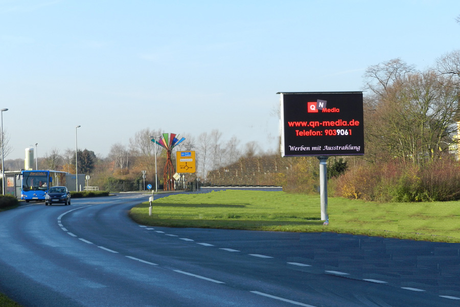 Unsere LED-Videowall besteht aus zwei leuchtstarken Displayflächen, jeweils ca. 3,00 × 4,00 m groß – perfekt sichtbar in beide Fahrtrichtungen.